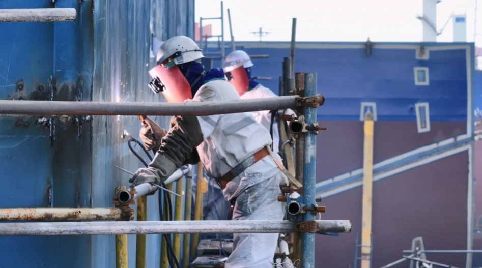 如今的江南造船寬敞明亮、干凈整潔,車間里、船塢內(nèi)、碼頭上……身著不同顏色工裝的作業(yè)人員在各自崗位上有序地工作。廠區(qū)內(nèi)懸掛著顯眼的“擔(dān)高質(zhì)量發(fā)展的先行者 當(dāng)傳統(tǒng)制造業(yè)的顛覆者”標(biāo)語(yǔ),以造船界優(yōu)秀前輩命名的廠區(qū)道路兩旁懸掛著江南造船科創(chuàng)大會(huì)的優(yōu)秀獲獎(jiǎng)?wù)邆兊暮?bào),新舊交替的一代代造船界前輩激勵(lì)著每一位江南人不斷向前。