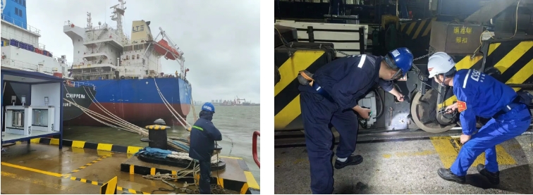 臺(tái)風(fēng)肆虐時(shí),組織管理人員抗臺(tái)值守,以“臺(tái)風(fēng)不撤,我們不撤”的原則堅(jiān)守一線。臺(tái)風(fēng)預(yù)警解除后,10小時(shí)內(nèi)完成登船梯搭設(shè)及纜繩解除,迅速恢復(fù)正常生產(chǎn)。憑借科學(xué)預(yù)案與堅(jiān)守,最終實(shí)現(xiàn)纜繩零斷裂、船舶零移位,有力保障了生命財(cái)產(chǎn)安全。