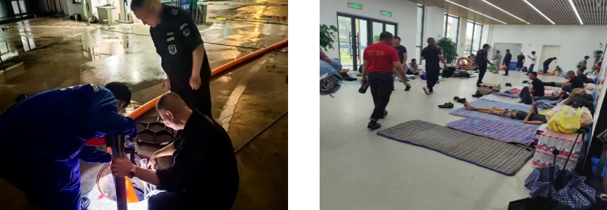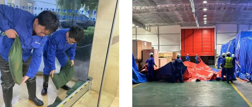 第一時間啟動防汛防臺緊急預案,向全體員工發(fā)出動員令。相關部門深入現(xiàn)場檢查設備設施,排除風險隱患。針對低洼易積水區(qū)域開展“竹節(jié)草”臺風前安全專項檢查,確保室外門能關盡關,同步組織排查所有易松動和易掉落物料的清理;在樓宇門口設置防汛沙袋,做好防水工作;在動力作業(yè)區(qū),開展變電站防汛沙袋布置和水位檢查等,確保現(xiàn)場安全。