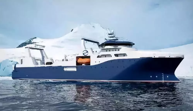 ????“深藍(lán)號(hào)”由黃埔文沖建造,七〇八所參與設(shè)計(jì),總長(zhǎng)約120米,型寬21.6米,設(shè)計(jì)吃水7.3米,設(shè)計(jì)航速15節(jié),主機(jī)功率8000 千瓦,載重噸約5000噸。“深藍(lán)號(hào)”是我國(guó)自主研制建造的第一艘漁業(yè)捕撈加工一體船,也是目前最大最先進(jìn)的漁業(yè)捕撈加工一體船,取得近200項(xiàng)知識(shí)產(chǎn)權(quán)保護(hù),實(shí)現(xiàn)了我國(guó)現(xiàn)代化漁業(yè)船舶裝備領(lǐng)域的重大突破,達(dá)到世界先進(jìn)水平;主要用于南大洋漁業(yè)捕撈,兼顧海洋科考功能,可滿足ICE-A冰區(qū)(冰厚度0.8米)及-25℃低溫環(huán)境的營(yíng)運(yùn)要求。