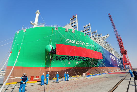 12月22日,中國船舶集團旗下江南造船、 七〇八所攜手中船貿易為法國達飛集團建造的23000TEU超大型雙燃料集裝箱船,“達飛盧浮宮”號正式命名交付。該船是中國船舶集團承建法國達飛集團9艘23000TEU系列船中的第4艘,也是江南造船交付的第2艘。
