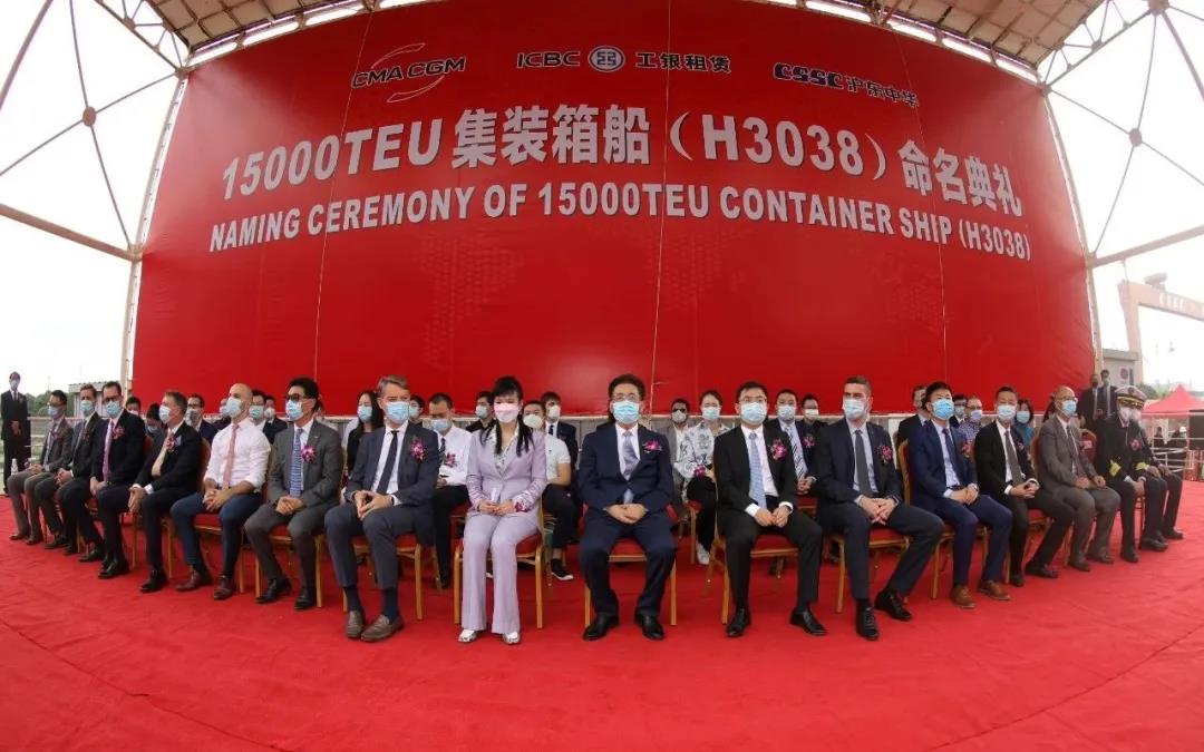 8月27日,由中國船舶集團(tuán)有限公司旗下滬東中華聯(lián)合中船貿(mào)易為法國達(dá)飛海運(yùn)集團(tuán)建造的15000TEU超大型集裝箱系列船首制船“達(dá)飛·和風(fēng)”號(hào)命名交付。這是中法兩國船海巨頭全面落實(shí)2019年中國國家主席習(xí)近平和法國總統(tǒng)馬克龍見證簽署的戰(zhàn)略合作框架協(xié)議的最新成果。同時(shí),也標(biāo)志著“CSSC超大型箱船譜系”又添“新丁”,實(shí)現(xiàn)了對(duì)全球超大型集裝箱船發(fā)展的引領(lǐng)。