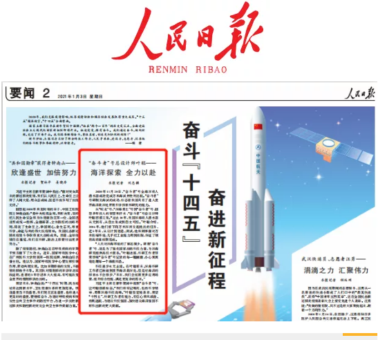 1月3日,人民日報在要聞二版【奮斗“十四五”  奮進新征程】專題報道中,以“海洋探索 全力以赴”為題刊發(fā)了對中國船舶集團七〇二所副所長“奮斗者”號總設(shè)計師葉聰?shù)膶TL。