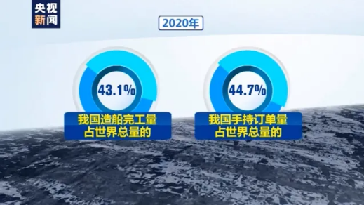 據(jù)統(tǒng)計(jì),2020年,我國造船完工量和手持訂單量,分別占世界總量的43.1%和44.7%,繼續(xù)在國際市場份額中繼續(xù)領(lǐng)先。