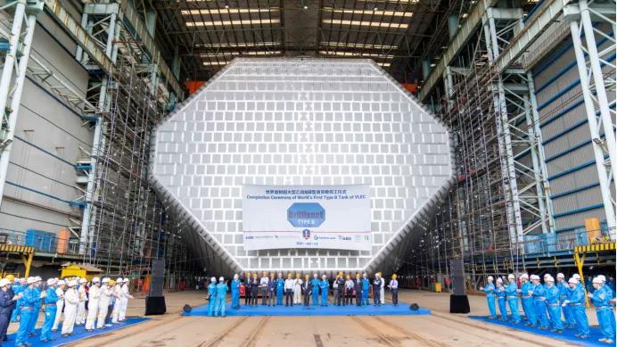 VLEC建造團(tuán)隊(duì)在船東、配套廠商和船級(jí)社等各方密切配合下,共同克服新冠肺炎疫情等不利因素,攻克B型液貨艙核心關(guān)鍵技術(shù)難點(diǎn),注重項(xiàng)目管理導(dǎo)向、革新工藝工法、鎳鋼焊接程序、薄板變形控制和優(yōu)化建造流程。從2019年12月底合同簽約到今天首制船的完工交付,總建造周期24個(gè)月,碼頭舾裝周期4個(gè)月,均開創(chuàng)了江南造船大型液化氣船首制船最短周期紀(jì)錄,實(shí)現(xiàn)了復(fù)雜船型節(jié)拍化建造。