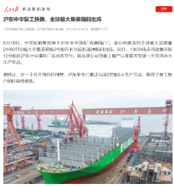 媒體聚焦|中國(guó)船舶滬東中華:全球最大集裝箱船出塢,產(chǎn)能恢復(fù)75%以上