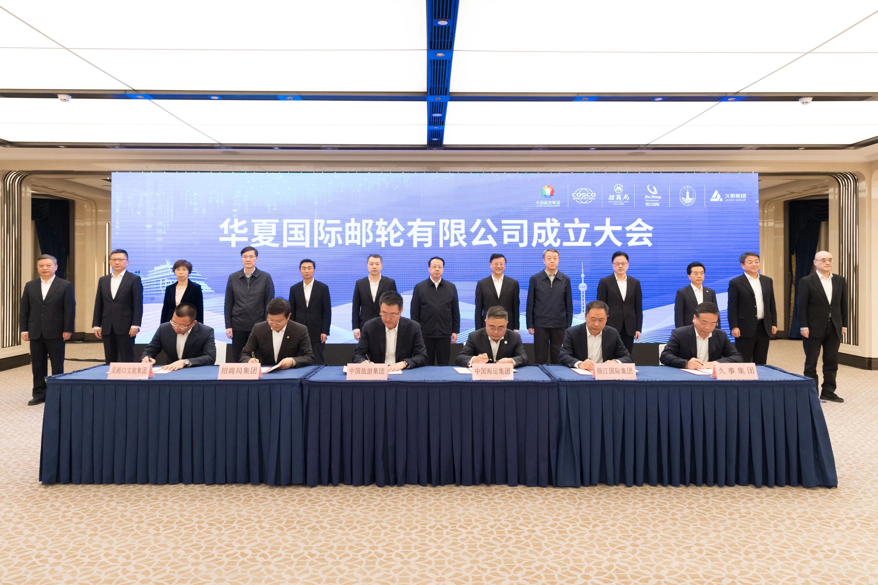 成立大會上,龔正、陳寅為華夏國際郵輪有限公司揭牌。中國旅游集團(tuán)、中國遠(yuǎn)洋海運(yùn)集團(tuán)、招商局集團(tuán)、錦江國際集團(tuán)、上海久事集團(tuán)、吳淞口文旅投資集團(tuán)相關(guān)負(fù)責(zé)同志簽約。
