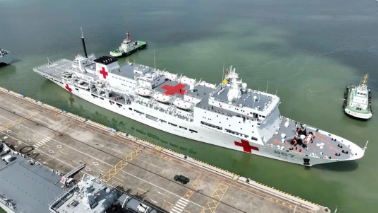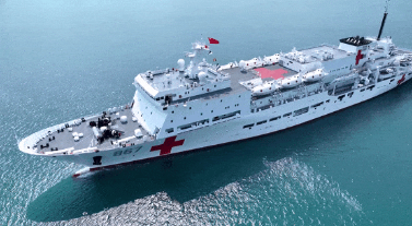 “絲路方舟”號醫(yī)院船羅吉星介紹:“作為一艘醫(yī)院船,它具備靈活的機動能力,能夠在災害發(fā)生第一時間迅速抵達災害地區(qū),提供醫(yī)療援助服務,還具備多種換乘能力和轉移手段,在不具備靠泊條件的災害地區(qū)可以通過直升機和救護艇,將醫(yī)護人員和醫(yī)療物資轉運上岸,或者通過同樣的方式將我們傷病員轉運至醫(yī)院船進行醫(yī)療救治。