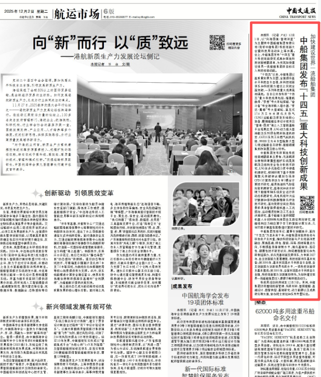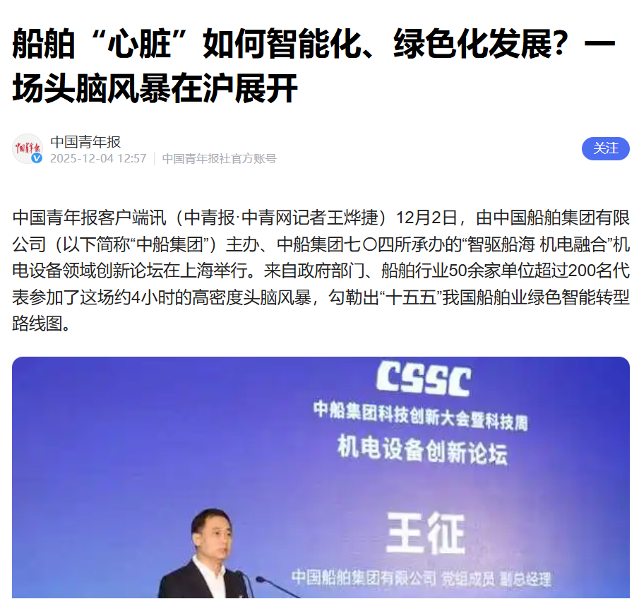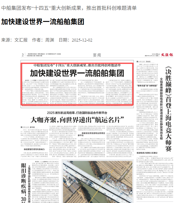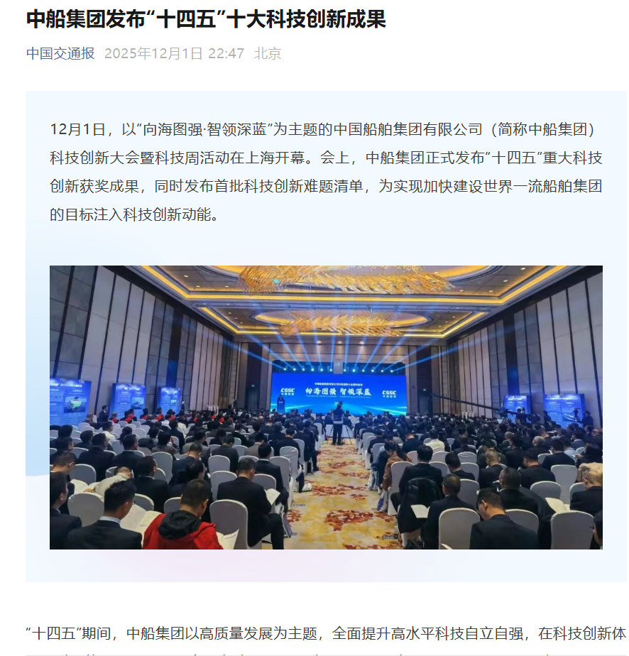 此次大會聚焦“向海圖強(qiáng)·智領(lǐng)深藍(lán)”主題,系統(tǒng)總結(jié)了中船集團(tuán)“十四五”期間科技創(chuàng)新工作及重大科技創(chuàng)新成果,謀劃“十五五”科技發(fā)展規(guī)劃,引發(fā)中央、行業(yè)及地方媒體的廣泛關(guān)注報道。