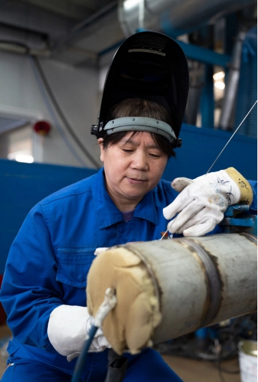至今,朱瑞霞已經(jīng)參與了“遠(yuǎn)望”系列船、“雪龍2”號(hào)、南昌艦等國(guó)家重點(diǎn)項(xiàng)目的焊接工作。她說(shuō),當(dāng)時(shí)有人高度評(píng)價(jià)稱:“你焊的管子可以免檢?!钡珘毫σ搽S之而來(lái),“我當(dāng)時(shí)就想,船一出海就是半年,我的焊接要是出問(wèn)題,就是人命關(guān)天。”正是因?yàn)檫@種“軸”,朱瑞霞先后攻克了鎳銅管焊接變形、HDR不銹鋼焊接、鈦合金焊接等一系列高難度問(wèn)題。她主導(dǎo)研發(fā)了十余項(xiàng)焊接專利技術(shù),攻克了薄壁管道焊接難題,還創(chuàng)新研制了特有的工裝,獲得外國(guó)專家的認(rèn)可和推廣應(yīng)用。