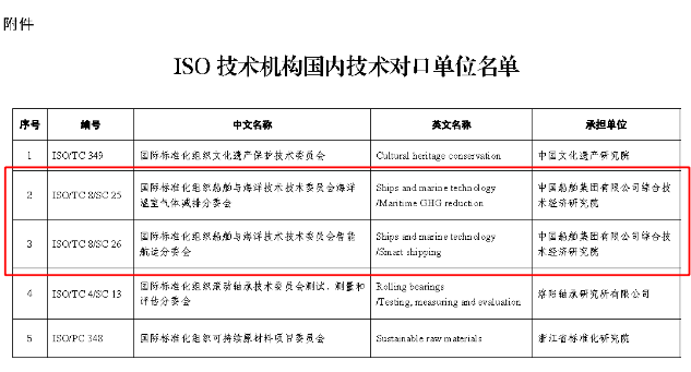 由中船綜合院承擔2個國際標準化組織(ISO)技術(shù)機構(gòu)國內(nèi)技術(shù)對口單位,分別是: