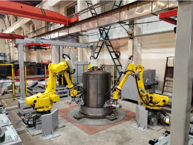 近日,中國(guó)船舶集團(tuán)旗下杰瑞自動(dòng)化承研的定子鐵芯疊裝機(jī)器人工作站項(xiàng)目通過(guò)驗(yàn)收并投入使用,實(shí)現(xiàn)了大型高壓異步電機(jī)關(guān)鍵配套——定子鐵芯的自動(dòng)化生產(chǎn)。