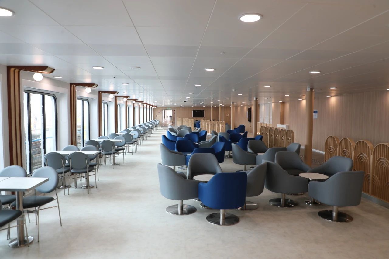 另外,該船還配有完整的隔離病房及防疫區(qū)等,空調(diào)通風(fēng)也進(jìn)行了特殊設(shè)計(jì),具備完善的生物安全應(yīng)對(duì)措施,是國(guó)內(nèi)建造的首艘取得全球最新的biosafe生物安全入級(jí)符號(hào)的豪華客滾船。