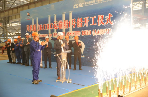 10月24日,中國(guó)船舶集團(tuán)旗下武昌造船為法國(guó)路易達(dá)孚航運(yùn)集團(tuán)公司(LDA)建造的風(fēng)帆助力滾裝(RORO)運(yùn)輸船首制船順利開工。