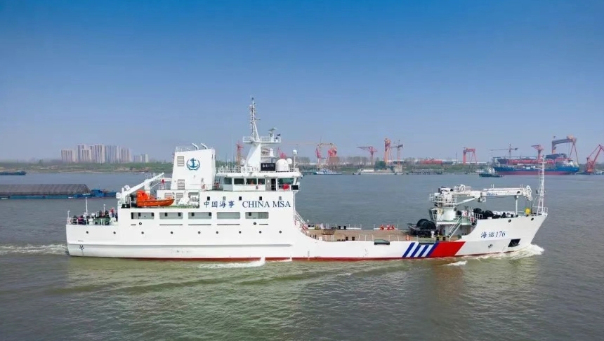 “海巡176”滿載排水量約為2450噸,續(xù)航力5000海里,采用全電力驅動,主要負責南海海區(qū)各港口及航道的航標布設、起吊、維護以及應急搜救等任務,同時兼具海上溢油處置、海事應急搜救、值守人員交通、物資補給、無線電導航信號監(jiān)測等多重功能。