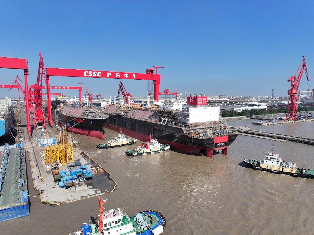 10月17日,中國船舶集團(tuán)有限公司旗下滬東中華為卡塔爾能源項目建造的17.4萬立方米液化天然氣(LNG)運(yùn)輸船“米赫澤姆”號和“東沙尼”號同日命名。這標(biāo)志該公司深入貫徹落實中船集團(tuán)“沖刺四季度”工作取得重要成果,在一周內(nèi)完成2船交付、2船命名、3船出塢、3船入塢,交出LNG運(yùn)輸船產(chǎn)能倍增優(yōu)異答卷。