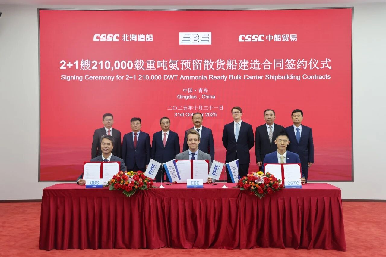 日前,中國船舶集團(tuán)有限公司旗下北海造船聯(lián)合中船貿(mào)易,與比利時(shí)航運(yùn)公司EBE成功簽署2+1艘21萬噸氨預(yù)留散貨船建造合同。此次合作是EBE公司首次在中國下單造船,體現(xiàn)了國際市場對北海造船建造實(shí)力的高度認(rèn)可。