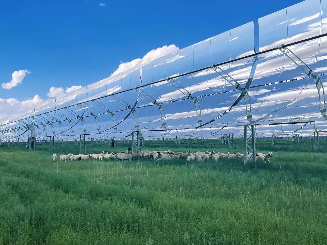 烏拉特項目建有352套集熱裝置,均勻分布在5平方公里草原上。在白天光照充足的情況下,烏拉特項目每小時可發(fā)電約10萬度,24小時可發(fā)電200萬度以上。